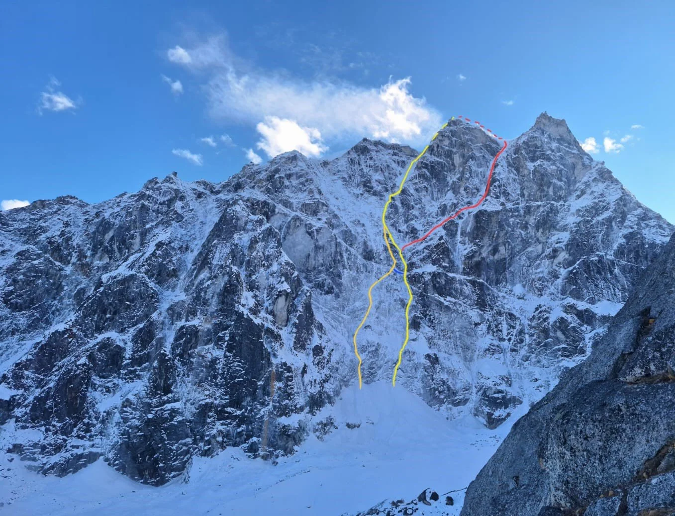 À l’automne 2024, Antoine Rolle, Jérémy Fino et Mathieu Stephan s’envolent pour le Népal. Leur objectif : ouvrir une voie sur la face nord du Langdak, un sommet sauvage et isolé de 6 240 mètres, au cœur du Khumbu occidental.